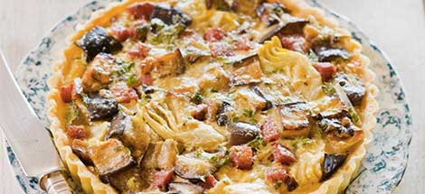 La ricetta più facile di torta salata con la ricotta e la pancetta a cubetti.