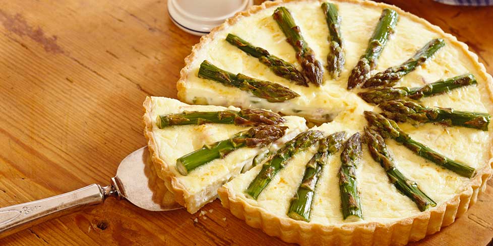 Quando l’impasto sarà ben omogeneo foderate una teglia con la pasta sfoglia e distribuite la farcitura livellandola con un cucchiaio. Sistemate gli asparagi interi sulla superficie della torta e infornate per 25 minuti. Servite la torta ancora ben calda.
