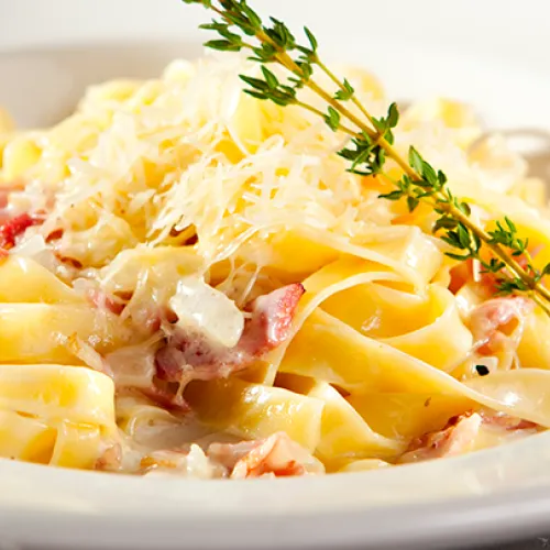 Pasta gratinata con stick di guanciale Negroni e mozzarella