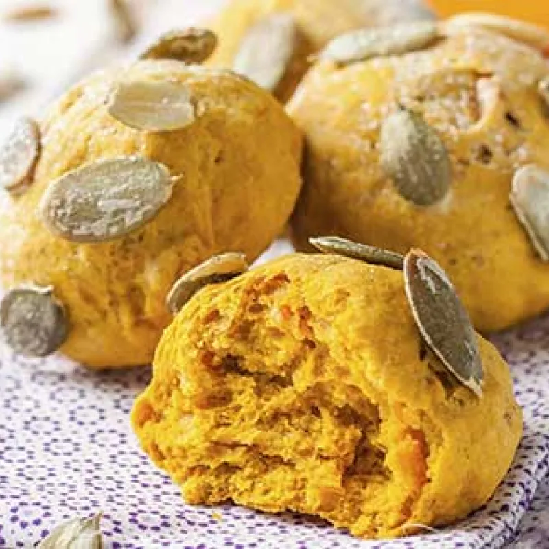 Pancake salati di zucca con prosciutto cotto, caprino e semi di papavero