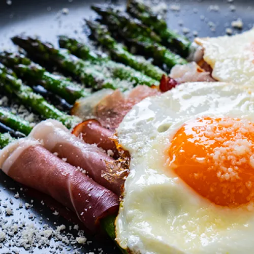 Cestini di sfoglia con uova e cubetti di pancetta affumicata