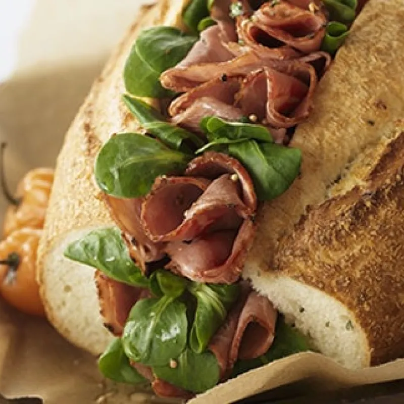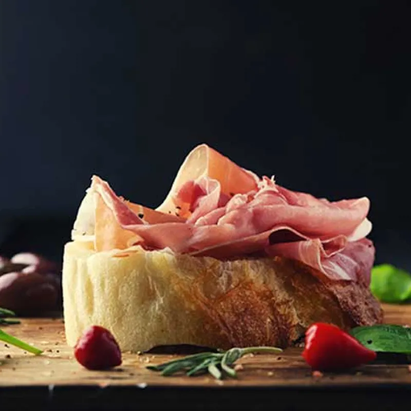Pane sfogliato al burro con prosciutto crudo, formaggio e menta
