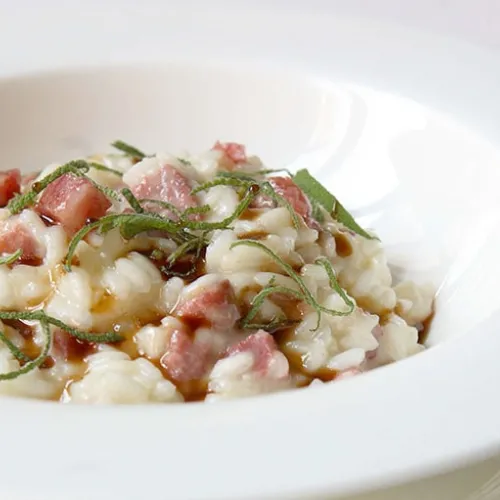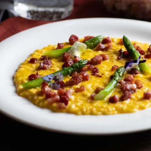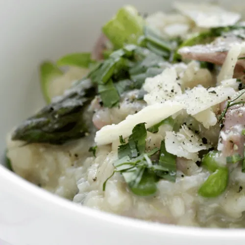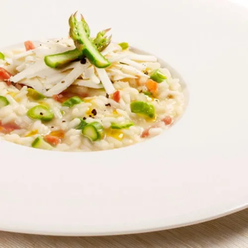 Risotto agli asparagi e guanciale, Rugiati per Negroni