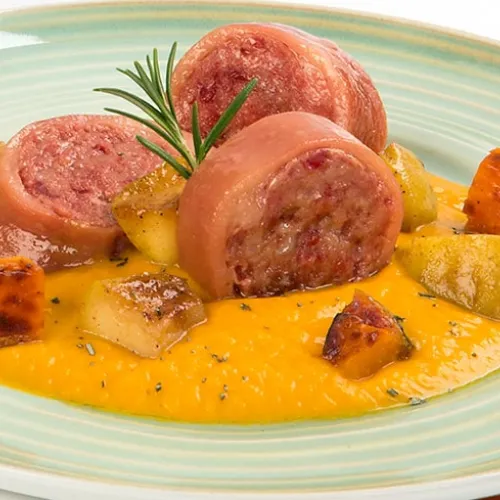 Zampone con mele renette e crema di zucca, Rugiati per Negroni
